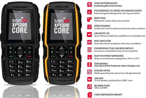 Poza odpornością na wodę, Sonim XP1300 Core może się pochwalić także certyfikatem IL-810G obejmującym odporność na zasolenie, wilgoć, wstrząsy (upadek z 2 metrów na beton), zmiany temperatur. Specjalnie dla nerwusów i eksperymentatorów zamontowano dwuwarstwowy wyświetlacz Gorilla Glass, a także gumowaną obudowę.