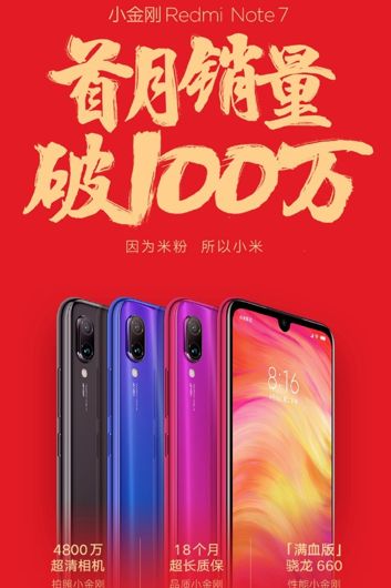 Lu Weibing, czyli CEO Redmi, ujawnił nawet ujawnił wewnętrzną wiadomość do zarządu Xiaomi, potwierdzającą sprzedaż miliona egzemplarzy. Redmi Note 7 był sprzedawany w serii błyskawicznych wyprzedaży - w ciągu kilku minut znikały tysiące z wystawionych modeli. Smartfon zawdzięcza swój sukces na krajowym rynku agresywnej polityce cenowej (w zależności od wersji kosztuje równowartość 150 do 200 dolarów), a potrafi zaoferować 48-megapikselowy aparat fotograficzny, chipset Snapdragon 660 i wsparcie dla Quick Charge 4.