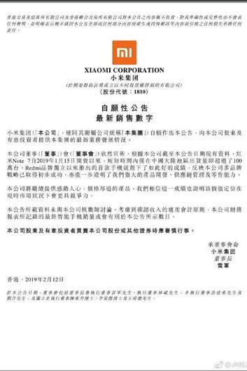 15 stycznia rozpoczęła się sprzedaż modelu Redmi Note 7. A dokładnie po 4 tygodniach osiągnięto milion sprzedanych sztuk. Firma pochwaliła się wynikiem na Weibo.
