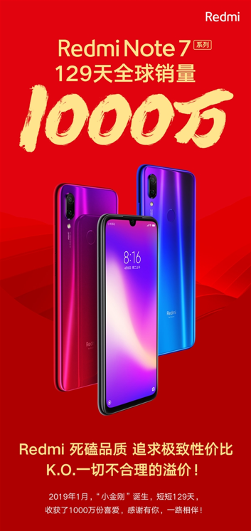 Jednym z ostatnich premierowych modeli Redmi jest seria Redmi Note 7. To świetna seria telefonów, wartych swojej ceny - co najpierw docenili użytkownicy w Chinach. W ciągu 45 dni sprzedano 4 miliony egzemplarzy modeli z tej serii. Teraz Lei Jun z Xiaomi ogłosił, że smartfony z serii Redmi Note 7 pobiły kolejny rekord - w ciągu 129 dni sprzedano globalnie 10 milionów urządzeń. Oznacza to, że wielkość sprzedaży wyniosła około 77 000 sztuk dziennie. Do tej pory rekord 10-milionowej sprzedaży należał do modelu Honor 8X i osiągniecie tej wartości zajęło producentowi 173 dni.