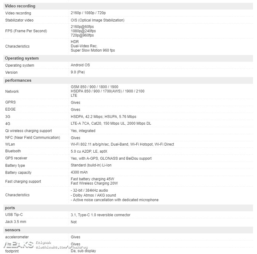 Na stronie rumuńskiego sklepu z elektroniką PC Garage pojawiła się pełna specyfikacja modelu Samsung Galaxy Note 10 Plus. Oczywiście do czasu premiery powinniśmy ją traktować raczej z przymrużeniem oka. Wedle niej Samsung Galaxy Note 10 Plus ma mieć ekran o przekątnej 6,8 cala i rozdzielczości 1440x3040 pikseli, z obsługą AoD i HDR10+. Napędzać go będzie Exynos 9825 z grafiką Mali-G76 MP12, do tego wyposażony został w 8 GB pamięci RAM i 256 GB pamięci wewnętrznej. Główny aparat (obejmujący standardowy czujnik, teleobiektyw i szeroki kąt) wyposażono w kamerę ToF, z frontu znalazł się natomiast 10MP aparat z obiektywem o jasności f/1.6. Całość zasila bateria o pojemności 4300 mAh. Note 10 Plus wspiera wszelkie standardy łączności, ma głośniki stereo i obsługuje Dolby Atmos. Zabraknie tu jednak gniazda słuchawkowego. Szczegóły - na poniższych grafikach: