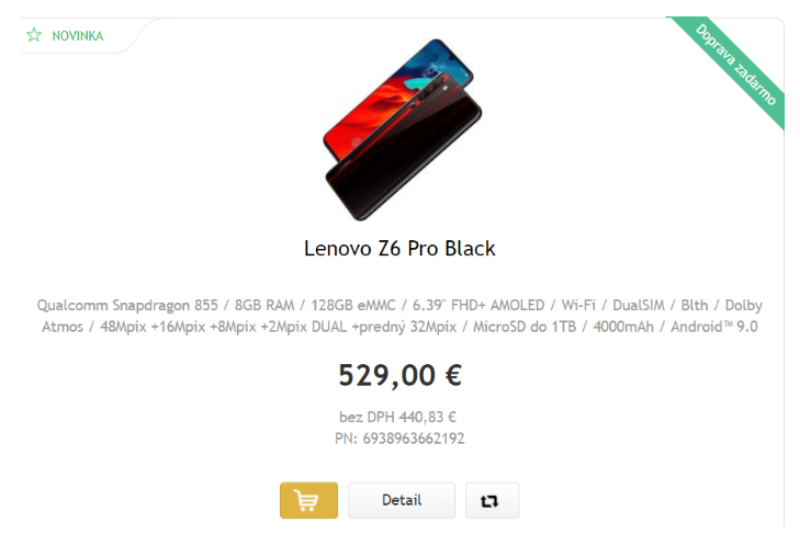 Oficjalny sklep Lenovo w Bułgarii był miejscem zagranicznego debiutu modelu Lenovo Z6 Pro. Wyceniono go na 999 lewów bułgarskich (ok. 2230 złotych). Teraz jego sprzedaż rozpoczęła się w kolejnym europejskim kraju - na Słowacji. Lenovo Z6 Pro jest sprzedawany na lenovoonlie.sk za 529 euro - do wyboru są dwie wersje kolorystyczne, czarna i niebieska.