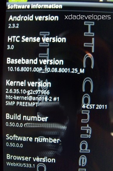 Jeśli wierzyć informacjom na wyświetlaczu, które potwierdzają wcześniejsze doniesienia, HTC Piramid wyposazono w dwurdzeniowy procesor 1,2 GHz, oraz 768 MB RAM. Zainstalowany w urządzeniu system, to również zgodnie z zapowiedziami Android 2.3.2 Gingerbread z ostatnią wersją firmowego interfejsu graficznego HTC Sense 3.0.