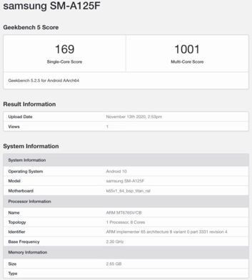 W popularnym benchmarku pojawiło się urządzenie z oznaczeniem SM-A125F - to Samsung Galaxy A12, bezpośredni następca Galaxy A11, który zadebiutował w maju bieżącego roku.
