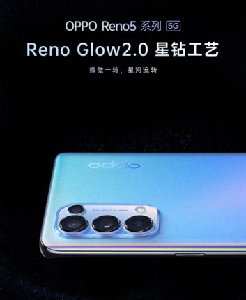 Oppo Reno 5 jest niemal taki sam jak Reno 5 Pro, z wyjątkiem procesora i baterii. Tańszy model jest bowiem napędzany przez ośmiordzeniowy procesor Qualcomm Snapdragon 765G i ma baterię o pojemności 4300 mAh z ładowaniem 65W SuperVOOC 2.0. Ma też nieco mniejszy ekran, płaski wyświetlacz oraz uniwersalne gniazdo słuchawkowe.