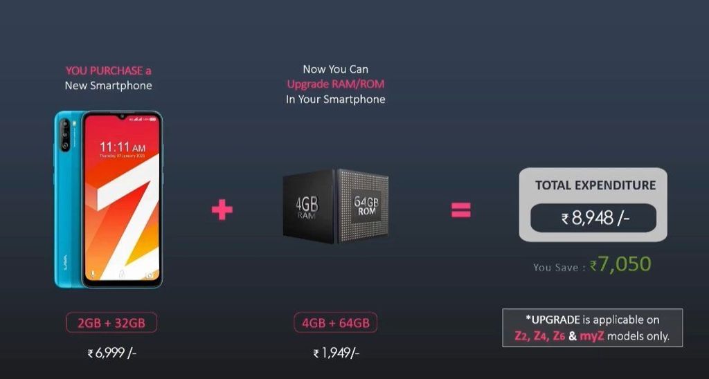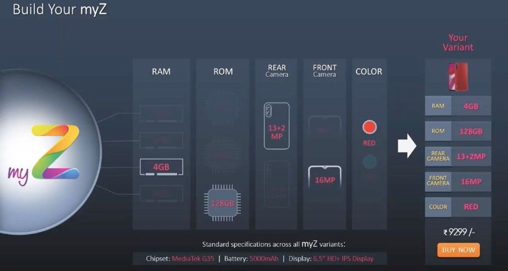 Dzięki dostępnemu na indyjskim rynku rozwiązaniu myZ, nabywcy mogą sami skonfigurować własny telefon, oparty na bazie specyfikacji Lava Z2, Lava Z4 i Lava Z6. "Rdzeń" konstrukcji obejmujący 6,5-calowy ekran HD+, procesor Helio G35 i baterię 5000 mAh pozostaje niezmienny, ale RAM, pamięć flash czy aparaty można dobrać samemu. Można - oczywiście w ramach dostępnych opcji - od 2 do 6 GB RAM-u, 32+128 GB flash, aparat tylny 13+5+2 lub 13+2 Mpx oraz aparat przedni 8 lub 16 Mpx - i do tego dwa kolory obudowy. Co ciekawe, pamięć operacyjną i flash będzie można wymienić w ciągu roku od zakupu, oczywiście za dodatkową opłatą.