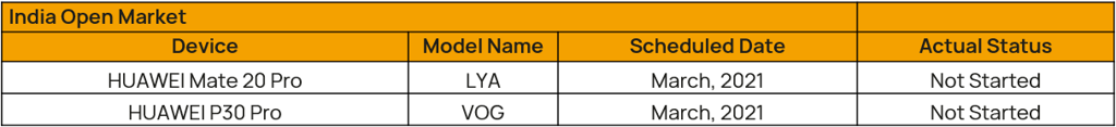 A to plany aktualizacji dla poszczególnych telefonów, z podziałem na określone regiony: