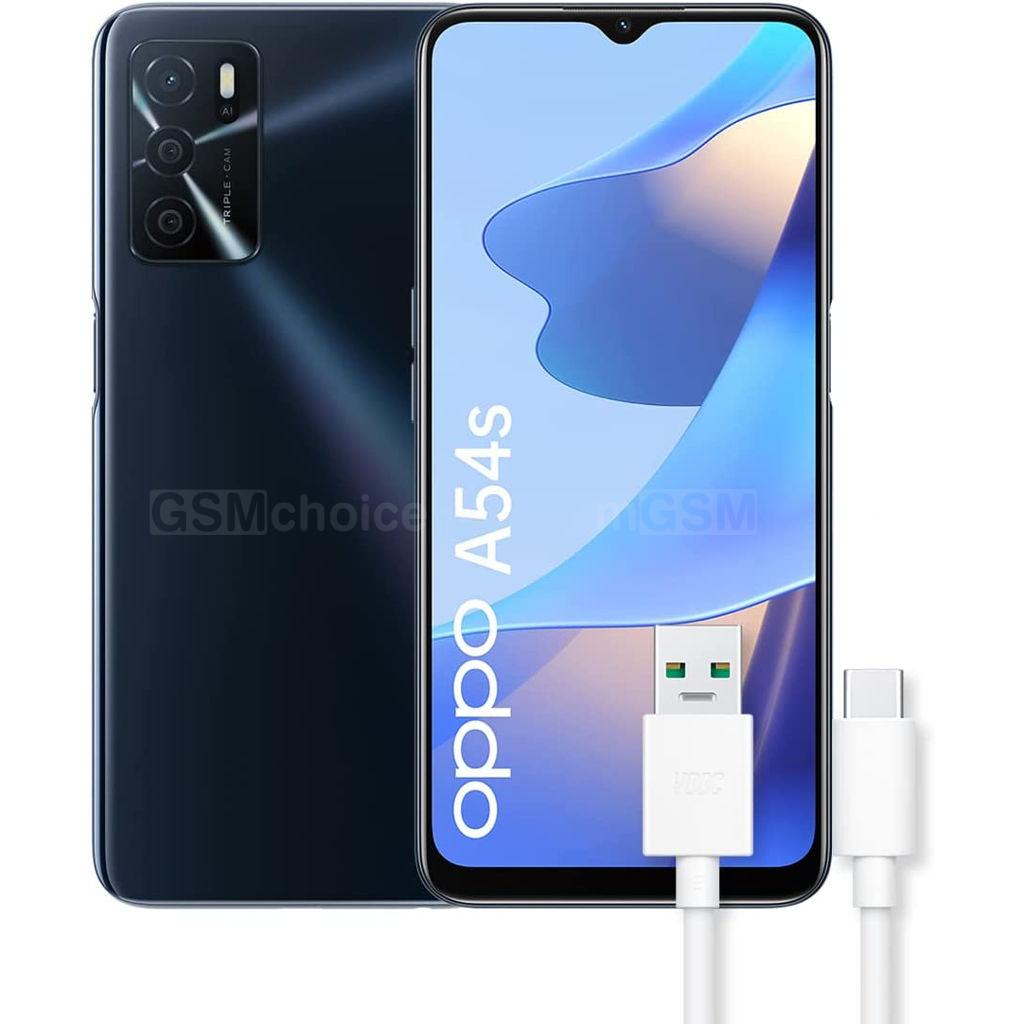 Oppo A54s ma wyświetlacz LCD o rozdzielczości HD+ i przekątnej 6,52 cala, a także procesor Helio G35, wspierany przez 4 GB pamięci operacyjnej oraz 128 GB pamięci flash. Smartfon wyposażony został w 8-megapikselowy aparat do selfie oraz potrójny aparat tylny. Główną matrycę 50 Mpx wspierają dwie dodatkowe po 2 Mpx - do makro i efektów tła. Urządzenie zasilane jest z akumulatora o pojemności 5000 mAh i waży 190 g. Wymiary telefonu wynoszą 163,8x75,6x8,4 mm