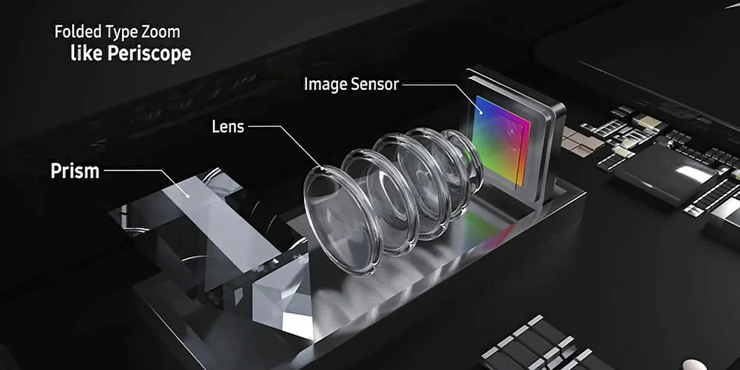 A czym jest ów "obiektyw peryskopowy"? Zasada działania jest znana od lat i stosowana na przykład w peryskopach na okrętach podwodnych. Pryzmat odbija światło pod kątem 90 stopni, dzięki czemu optyka aparatu może zostać umieszczona wzdłuż telefonu. Co oczywiście pozwala na zbudowanie obiektywu o długiej ogniskowej bez konieczności pogrubiania aparatu. Samsung i Huawei stosują takie obiektywy od jakiegoś czasu i pozwalają one na uzyskanie nawet 10x zoomu optycznego, którzy w połączeniu z zoomem cyfrowym daje nawet 100-krotne powiększenie.