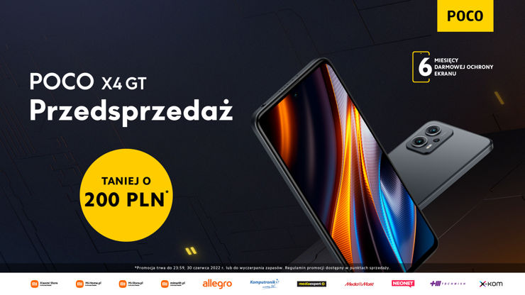 Oprócz 200 zł zniżki POCO oferuje też jednorazową, bezpłatną naprawę ekranu w ciągu pierwszych 6 miesięcy od zakupu. Promocja trwa do 30 czerwca lub do wyczerpania zapasów. Można z niej skorzystać w punktach Xiaomi Store, na mi-home.pl, mimarkt.pl i mi-store.pl i w innych sklepach online.