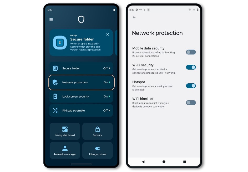 Kolejną ciekawą funkcją są dodatkowe zabezpieczenia ekranu blokady - tradycyjnie Android chroni kodem PIN ekran główny, ale pozwala na zmianę części ustawień bez odblokowywania telefonu. To pozwalało potencjalnemu złodziejowi na wyłączenie GPS i łączności mobilnej, by uniemożliwić zlokalizowanie urządzenia. Moto Secure pozwala załatać tę lukę, a także kilka innych. Funkcja Ochrona Sieci automatycznie ostrzeże o problemach z bezpieczeństwem hotspotów czy sieci Wi-Fi, zablokuje połączenia 2G, lub uniemożliwi określonym aplikacjom używanie otwartych połączeń.