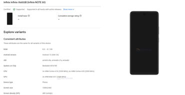 Opublikowane w Google Play Console informacje nie ukazują całokształtu specyfikacji smartfona znanego jako Infinix Note 30 (tudzież Infinix-X6833B), ale jedną różnicę widać od razu - widoczny na renderze wyświetlacz ma przedni aparat do selfie w okrągłym otworku zamiast notcha, podobnie jak modele Pro z serii Infinix Note 12.
