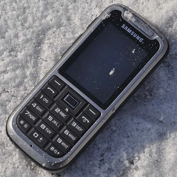 Telefon ma tradycyjną budowę, ze stosunkowo niewielkim jak na obecne czasy wyświetlaczem i typową klawiaturą. Wyróżnia go jednak dość spora grubość obudowy i jej konstrukcja. Wykonano ją z wytrzymałego tworzywa, zaś wszystkie pokrywy otrzymały specjalne uszczelki. To nie dziwne, bowiem urządzenie spełnia wymogi normy IP67. Oznacza to, że obudowa jest całkowicie zabezpieczona przed wnikaniem pyłów, telefon można także zanurzyć w wodzie na głębokość do metra przez pół godziny. I rzeczywiście - telefon spędził kilkanaście godzin w naczyniu z wodą - i wciąż działa. Mróz również nie robi na nim żadnego wrażenia. Po dwóch dobach w zamrażalniku (średnio - 5 st.C) nie zauważyłem żadnych niepokojących objawów, muszę też podkreślić, iż niska temperatura nie spowodowała obniżenia wydajności baterii. A ta jest znakomita. Telefon mam już od kilku dni i jak dotąd wskaźnik baterii skurczył się jedynie o jedną kreskę. Podejrzewam, że wytrzyma ponad tydzień.