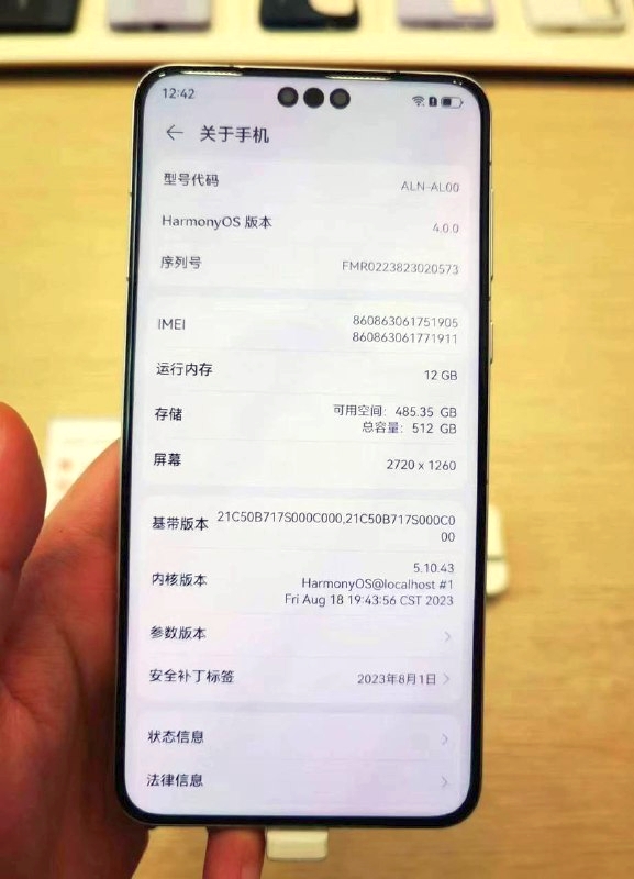 Na tyle obudowy znajdziemy kolejne trzy aparaty. Główny ma 50 megapikseli i Optyczną Stabilizację Obrazu, a także zmienną przysłonę f/1.4-f/4.0. Obok jest aparat szerokokątny z matrycą 12 Mpx i przysłoną f/2.2, zaś trzeci aparat, z teleobiektywem, ma matrycę 48 Mpx, przysłonę f/3.0 i - ponownie - Optyczną Stabilizację. W roli systemu występuje HarmonyOS 4.0, zaś zasilanie wszystkiego zapewnia akumulator o pojemności 5000 mAh, ładujący się przewodowo z mocą 88 W, bezprzewodowo 50 W i dający ładowanie zwrotne 20 W. Smartfon ma też NFC, podekranowy czytnik linii papilarnych, głośniki stereo i gniazdo na kartę pamięci NM, a do tego obsługuje dwukierunkową łączność satelitarną, głosową i tekstową. Do wyboru są cztery kolory obudowy (szczelnej w klasie IP68), a także trzy wersje pamięci flash - 256 i 512 GB oraz 1 TB. Cennik jest następujący: