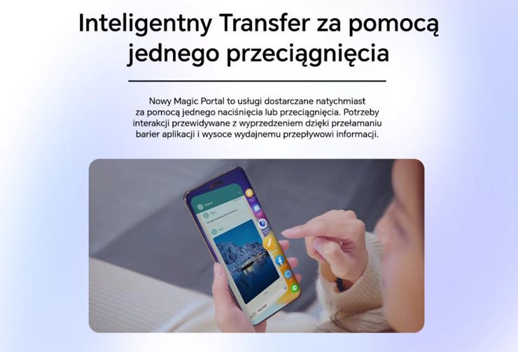 Magiczny Portal to stosunkowo prosta koncepcja - przytrzymujemy interesującą nas treść, przeciągamy na bok i przenosimy do innej aplikacji. To, co wyróżnia Magiczny Portal, to jego wielofunkcyjne i inteligentne działanie - smartfon przeanalizuje wybraną przez nas treść i na tej podstawie podsunie nam odpowiednie aplikacje, w której będziemy mogli ją umieścić. W miarę używania Magiczny Portal przyzwyczaja się do naszych nawyków, by coraz trafniej podpowiadać przydatne aplikacje i działania. Rozpoznawanie typu kopiowanej treści również nie jest zupełnie nowym pomysłem, ale Honor wynosi prostą ideę na nowy poziom.