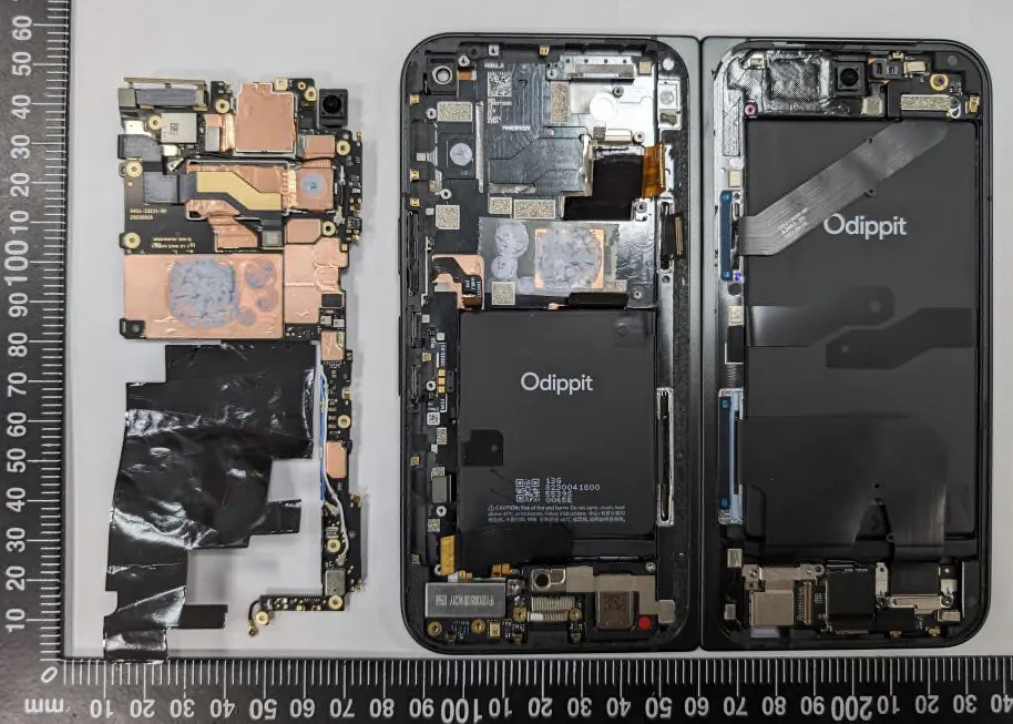 Nowe zdjęcia modelu z numerem seryjnym GGH2X potwierdzają szczegóły ujawnione wcześniej na renderach Google Pixel 9 Pro Fold, wcześniej znanego nieoficjalnie jako Google Pixel Fold 2. Zamiast typowej dla serii Pixel podłużnej wyspy mamy bardziej prostokątny kształt z dwoma paskami, a wewnętrzny aparat do selfie teraz znajduje się na togu ekranu. Składany ekran Google Pixel 9 Pro Fold ma węższe górne i dolne ramki, mniejsza wydaje się być także fałda na zgięciu. Rozłożony smartfon leży teraz kompletnie płasko, podczas gdy pierwszego Folda nie dało się otworzyć całkowicie.