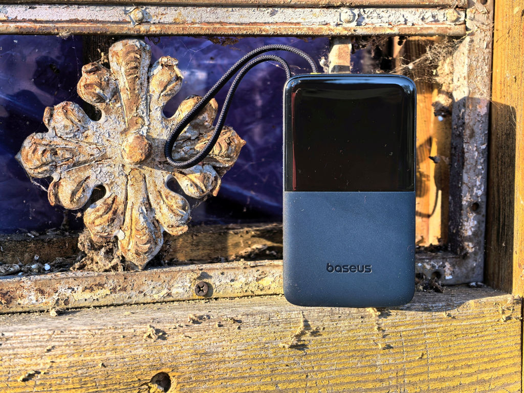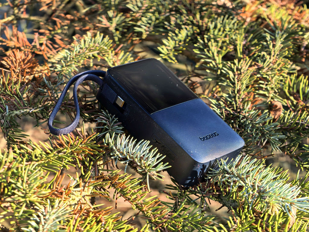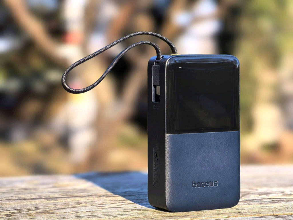 Wbudowany kabel to ogromna wygoda, ale Baseus nie zapomniał o użytkownikach innych standardów – dodatkowe porty pozwalają podłączyć dowolny przewód, co czyni powerbank sprzętem uniwersalnym i elastycznym. Wyświetlacz LED jest jasny i czytelny, choć raczej nie w pełnym słońcu, a jego wskazania są wystarczająco precyzyjne. To szczególnie ważne podczas dłuższych wyjazdów, kiedy trzeba kontrolować pozostałą energię.