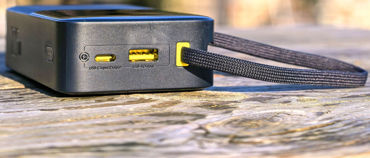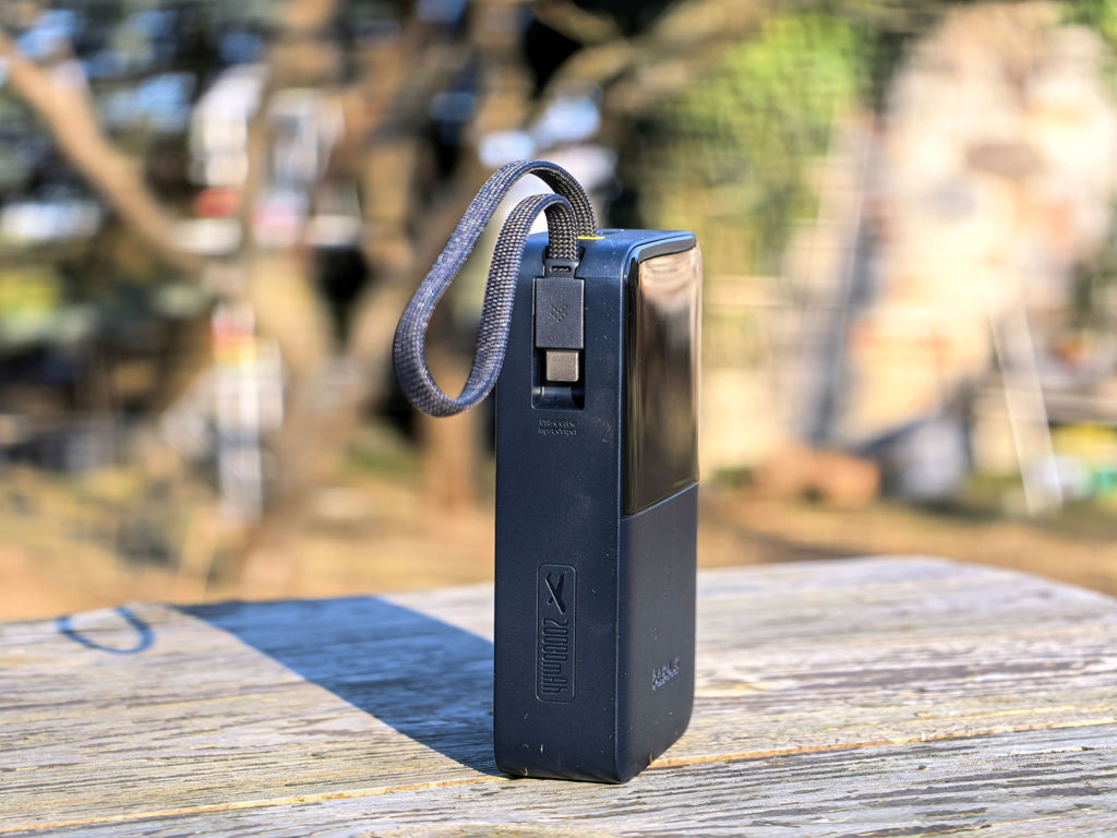 Powerbank oferuje trzy porty wyjściowe, w tym 1x USB‑A oraz 2x USB‑C, co pozwala ładować do trzech urządzeń jednocześnie. To szczególnie przydatne podczas podróży lub pracy w terenie, gdy trzeba zasilić telefon, słuchawki i np. aparat fotograficzny. Jak widać na zdjęciach gniazda są dwa, ponieważ drugi port USB-C ma po prostu wtyczkę - tak, to ta, co wygląda jak smycz.