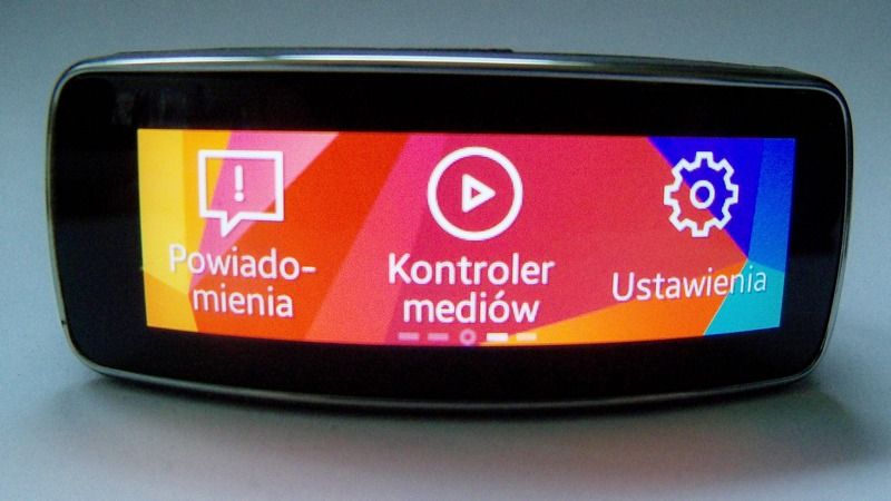 Ekran, pod względem wizualnym, prezentuje się doskonale. Jest nieco wygięty, o panoramicznych proporcjach, rozdzielczości 128x432 pikseli i bardzo dobrych parametrach w zakresie kontrastu, kolorystyki i jasności. Bez zarzutu działa także dotyk. Na dodatek za wytrzymałość odpowiada Corning Gorilla Glass 3. Niestety widoczność w pełnym słońcu nie jest najlepsza.