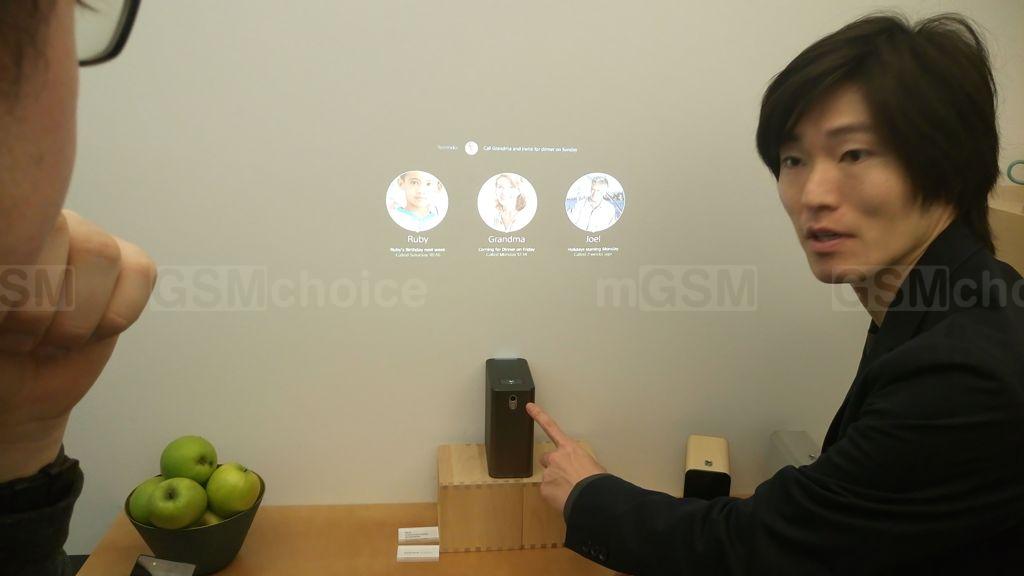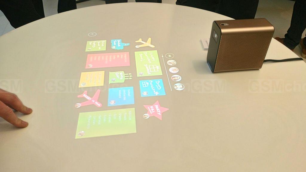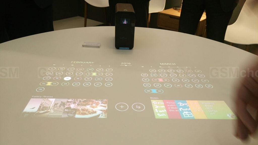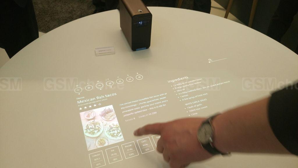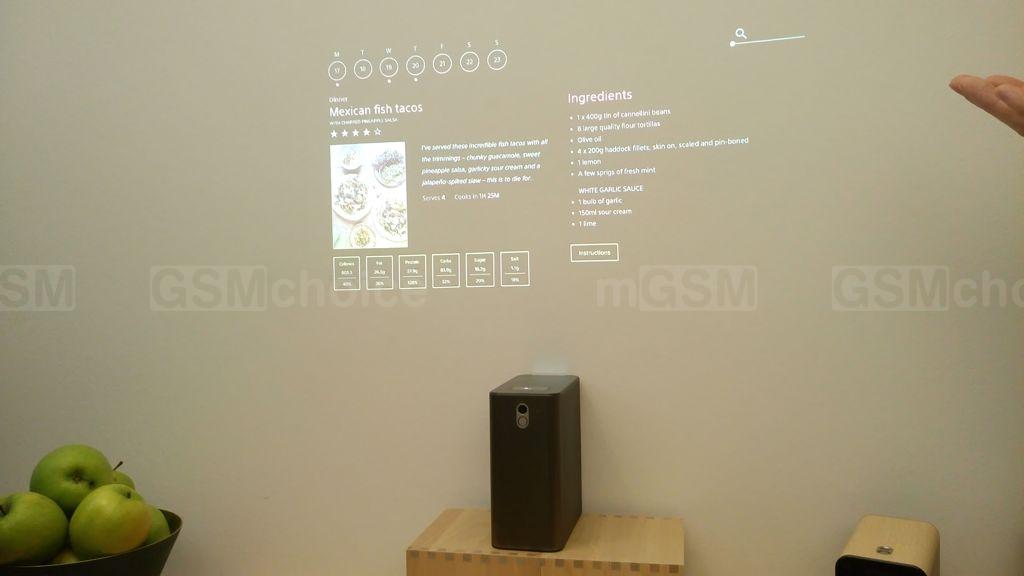 Jest także interesujący projektor. Z jego pomocą możliwe jest wyświetlanie interfejsu na ścianie albo na stole, i dotykowa obsługa - pokazywanie wiadomości, pogody, przepisów kuchennych, kalendarza lub kontaktów.