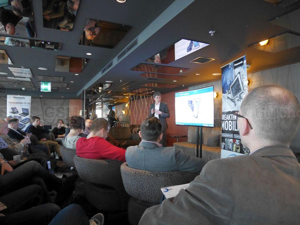 Wysoko nad Warszawą mieliśmy okazję posłuchać przedstawiciela firmy, Jacka Wielgusa, który prezentował nowe urządzenia: Toughpad FZ-F1 i FZ-N1. No może nie tak nowe, premierę miały podczas tegorocznych barcelońskich targów Mobile World Congress. Obydwa Toughpady (modele różnią się systemem operacyjnym) łączą w sobie cechy trzech urządzeń: tabletów, smartfonów i specjalistycznych terminali i oferują wysoką funkcjonalność, jednocześnie zachowując relatywnie kompaktowe rozmiary. Stanowią nową generację urządzeń, godnych następców modeli FZ-E1 i FZ-X1.