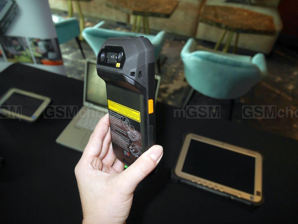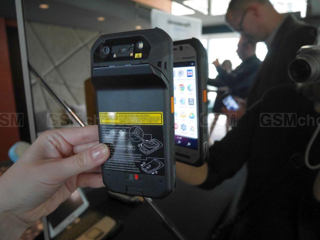 - wyprofilowany (pod kątem 70 stopni) czytnik kodów kreskowych dla 44 rodzajów kodów 1D/2D z dwoma przyciskami aktywującymi czytnik, co ma zapewnić wygodę zarówno dla prawo-, jak i leworęcznych użytkowników (oraz diodami LED, umożliwiającymi pracę przy niedostatecznym oświetleniu)