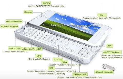 xpPhone ma 4,8-calowy dotykowy wyświetlacz, GPS i może działać w zastępstwie netbooka wyposażonego w system Windows XP. Autor artykułu na Gizmodo twierdzi, że widział xpPhone w działaniu na targach Computex w czerwcu i że od tego czasu zostało dodatkowo zmodyfikowane.