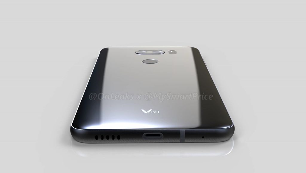 Z tyłu obudowy widać podwójny aparat fotograficzny oraz czytnik linii papilarnych, można również zauważyć otwory głośnika, port USB-C oraz wyjście minijack. Twórcy grafik zakładają również, że V30 otrzyma układ bezprzewodowego ładowania - ale to nie jest jeszcze pewne.