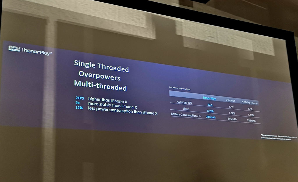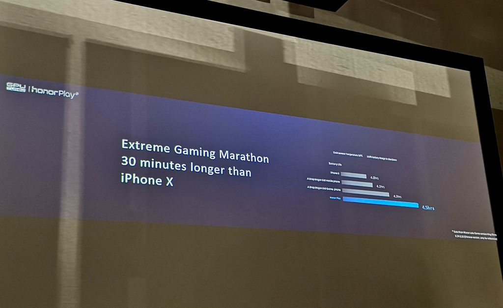 Sztuczna inteligencja pomoże w dwóch głównych aspektach działania smartfona Honor Play. Pierwszy i najważniejszy z nich to oczywiście gry. Procesor AI wspierający działanie oprogramowania GPU Turbo pozwoli na osiągnięcie większej wydajności w grach i zapewni nieco niższe zużycie baterii, która w tym modelu ma pojemność 3750 mAh. Producent deklaruje 60% optymalizację wydajności i 30% optymalizację zużycia baterii. Działanie GPU Turbo testowane było na takich mobilnych tytułach jak PUBG, Mobile Legends, Asphalt 9 i King of Glory.
