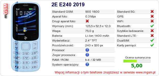 Dane telefonu 2E E240 2019 na Twojej stronie