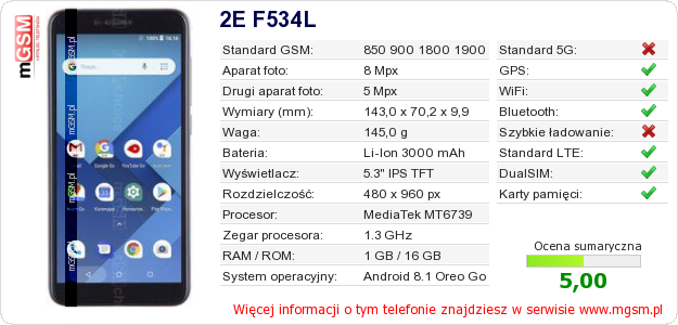 Dane telefonu 2E F534L na Twojej stronie