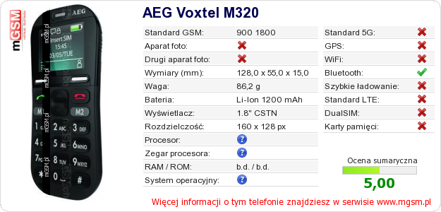 Dane telefonu AEG Voxtel M320 na Twojej stronie