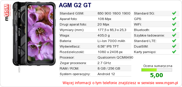 Dane telefonu AGM G2 GT na Twojej stronie