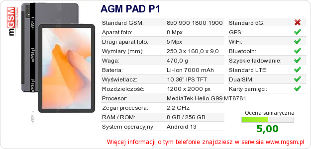 Dane telefonu AGM PAD P1 na Twojej stronie