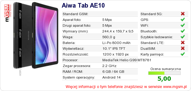 Dane telefonu Aiwa Tab AE10 na Twojej stronie