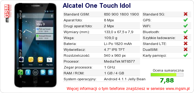 Dane telefonu Alcatel One Touch Idol na Twojej stronie