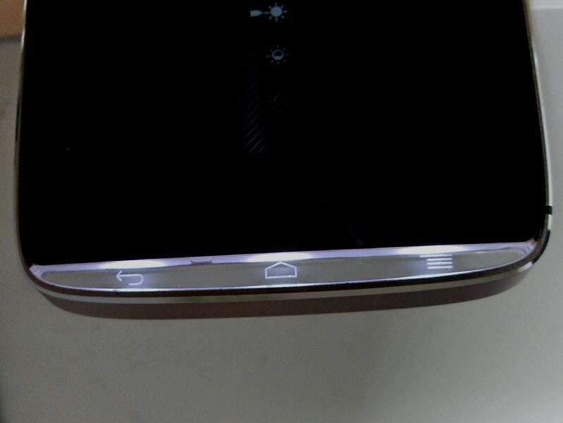 Front urządzenia tradycyjnie zajmuje dotykowy wyświetlacz. Nad nim zlokalizowano kamerę do wideorozmów i głośnik oraz czujnik oświetlenia i zbliżeniowy, pod nim zaś dotykowe przyciski back, home i menu. Co najdziwniejsze, same przyciski nie są ani oznaczone, ani podświetlone - stosowne piktogramy i diodowe podświetlenie znaleźć można poniżej faktycznych przycisków, na przezroczystym pasku. Na szczęście do tego rozwiązania można się w miarę szybko przyzwyczaić.