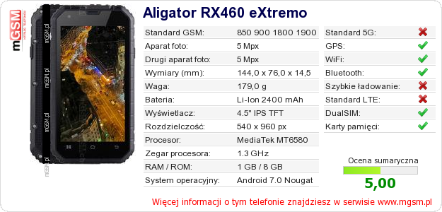 Dane telefonu Aligator RX460 eXtremo na Twojej stronie