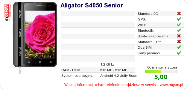 Dane telefonu Aligator S4050 Senior na Twojej stronie