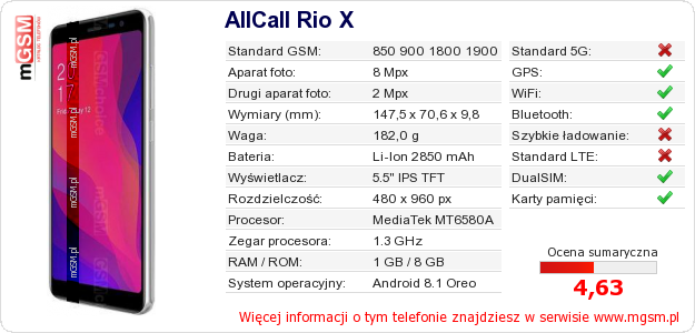 Dane telefonu AllCall Rio X na Twojej stronie