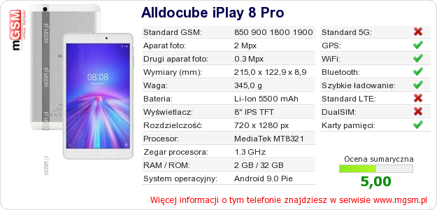 Dane telefonu Alldocube iPlay 8 Pro na Twojej stronie
