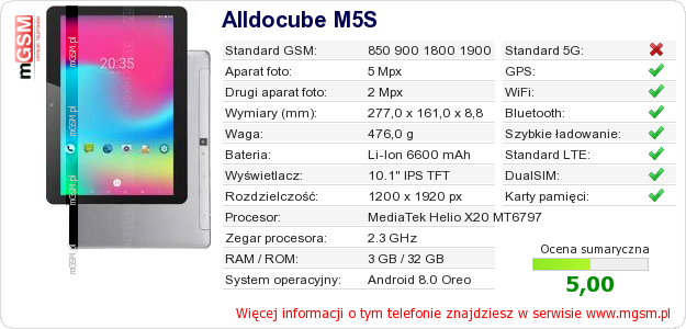 Dane telefonu Alldocube M5S na Twojej stronie
