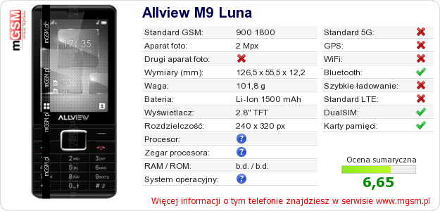 Dane telefonu Allview M9 Luna na Twojej stronie