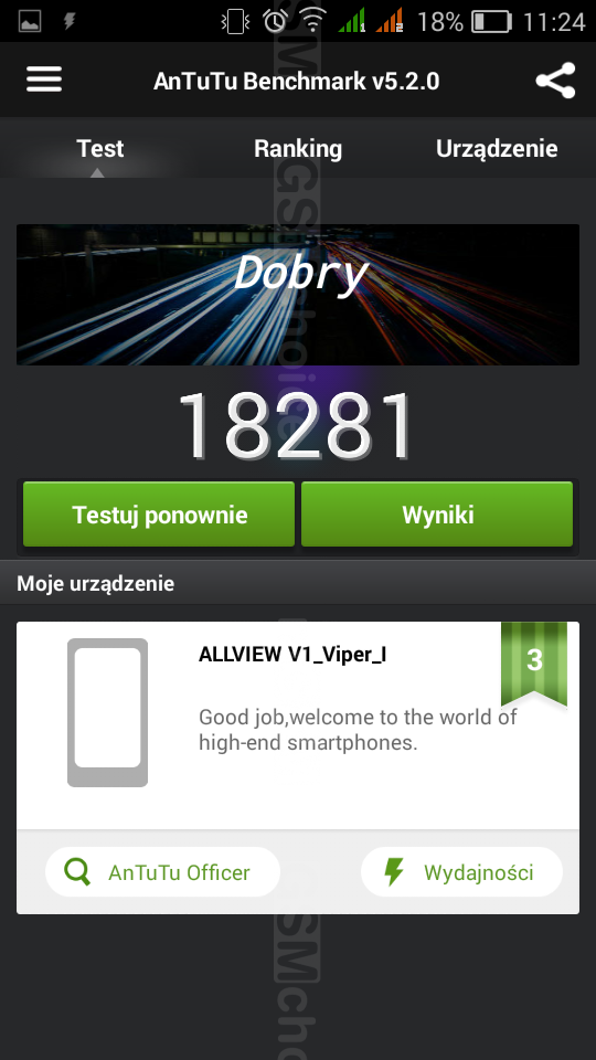 Wynik testu AnTuTu Benchmark brzmi "Dobry", a poniżej prezentuję bardziej szczegółowe informacje.