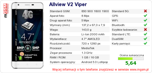 Dane telefonu Allview V2 Viper na Twojej stronie