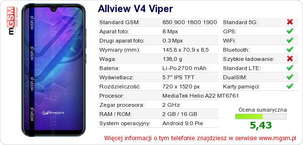 Dane telefonu Allview V4 Viper na Twojej stronie