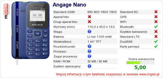 Dane telefonu Angage Nano na Twojej stronie