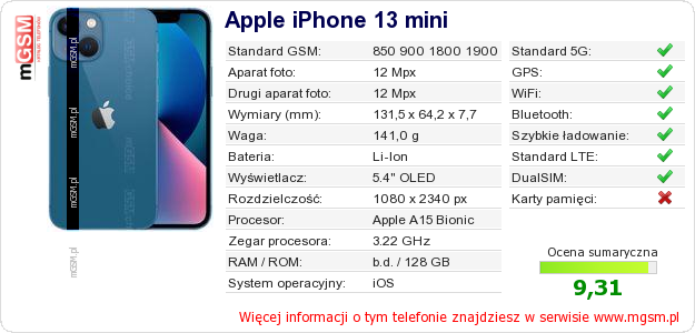 Dane telefonu Apple iPhone 13 mini na Twojej stronie