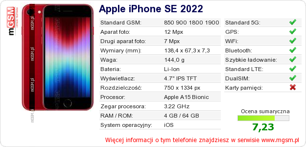 Dane telefonu Apple iPhone SE 2022 na Twojej stronie