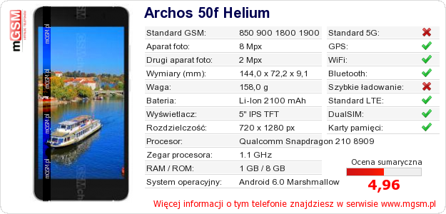 Dane telefonu Archos 50f Helium na Twojej stronie